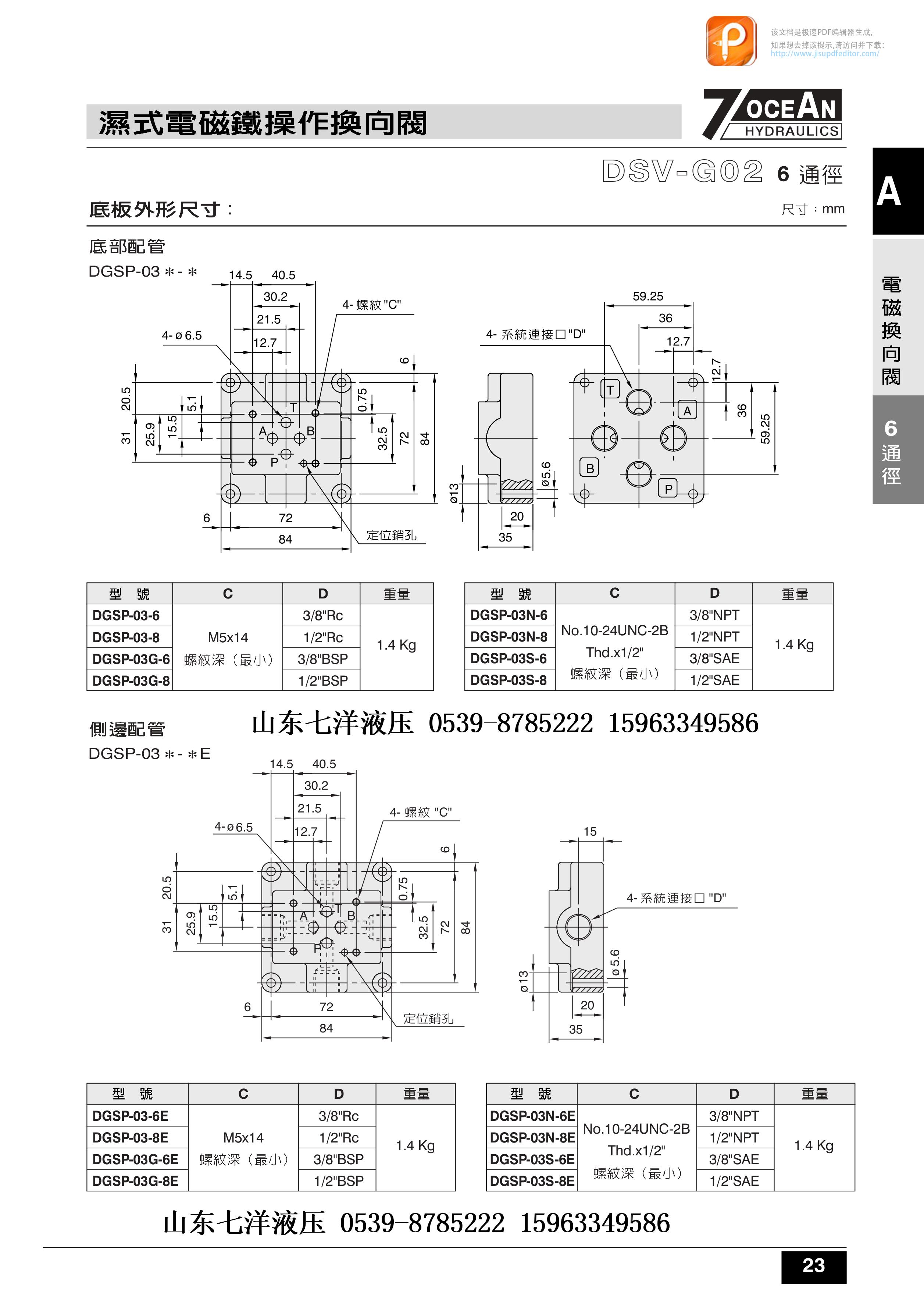7.適用于ISO,CETOP,NFPA和DIN國際標準之安裝面。