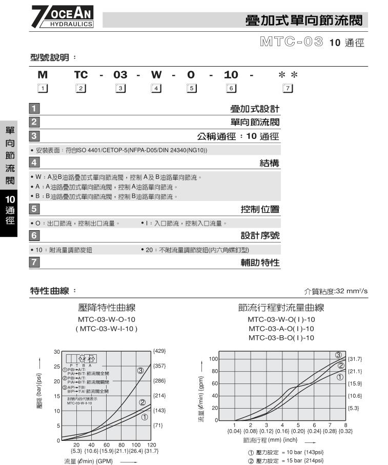 臺灣七洋7OCEAN疊加式單向節(jié)流閥部分型號:
