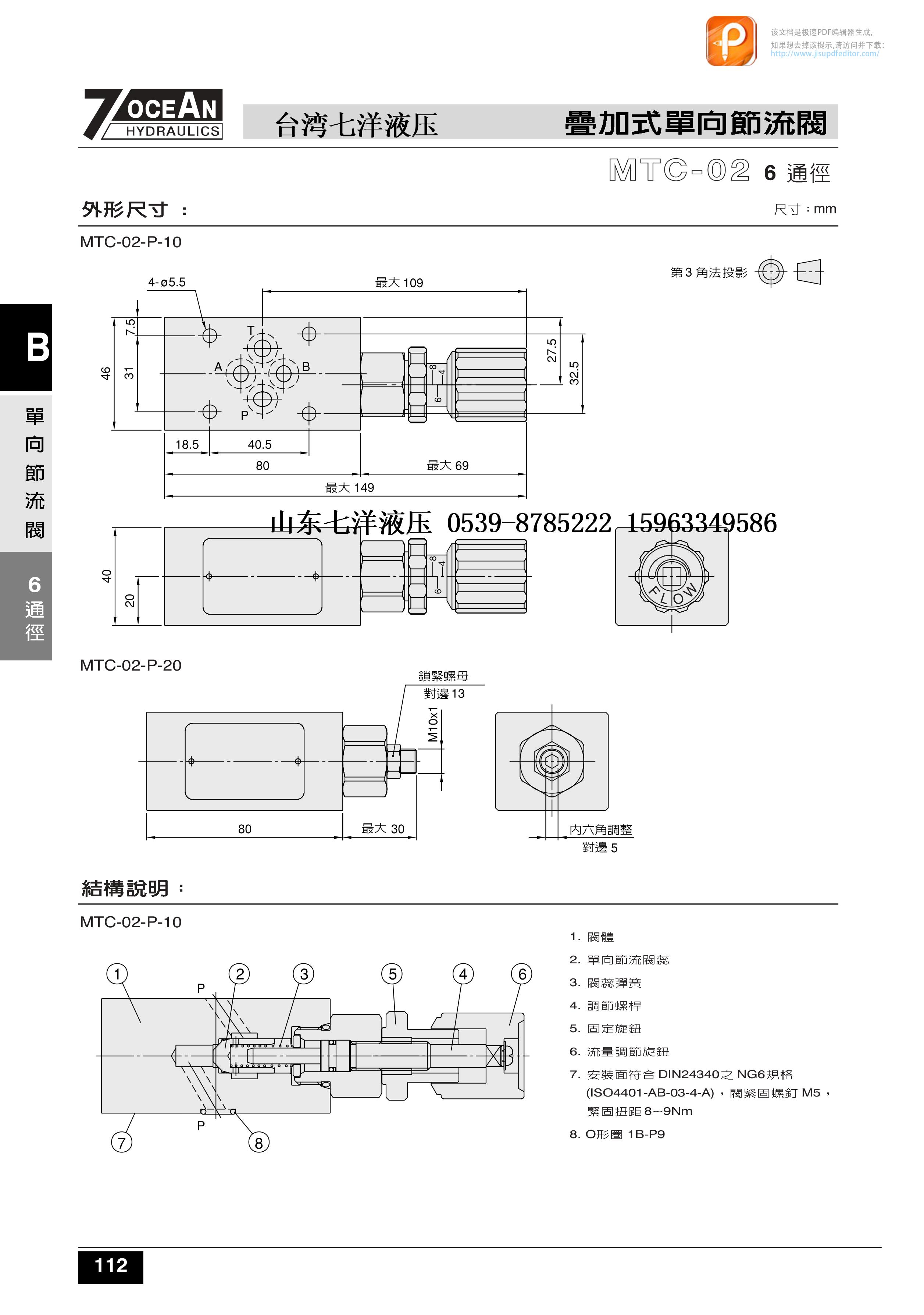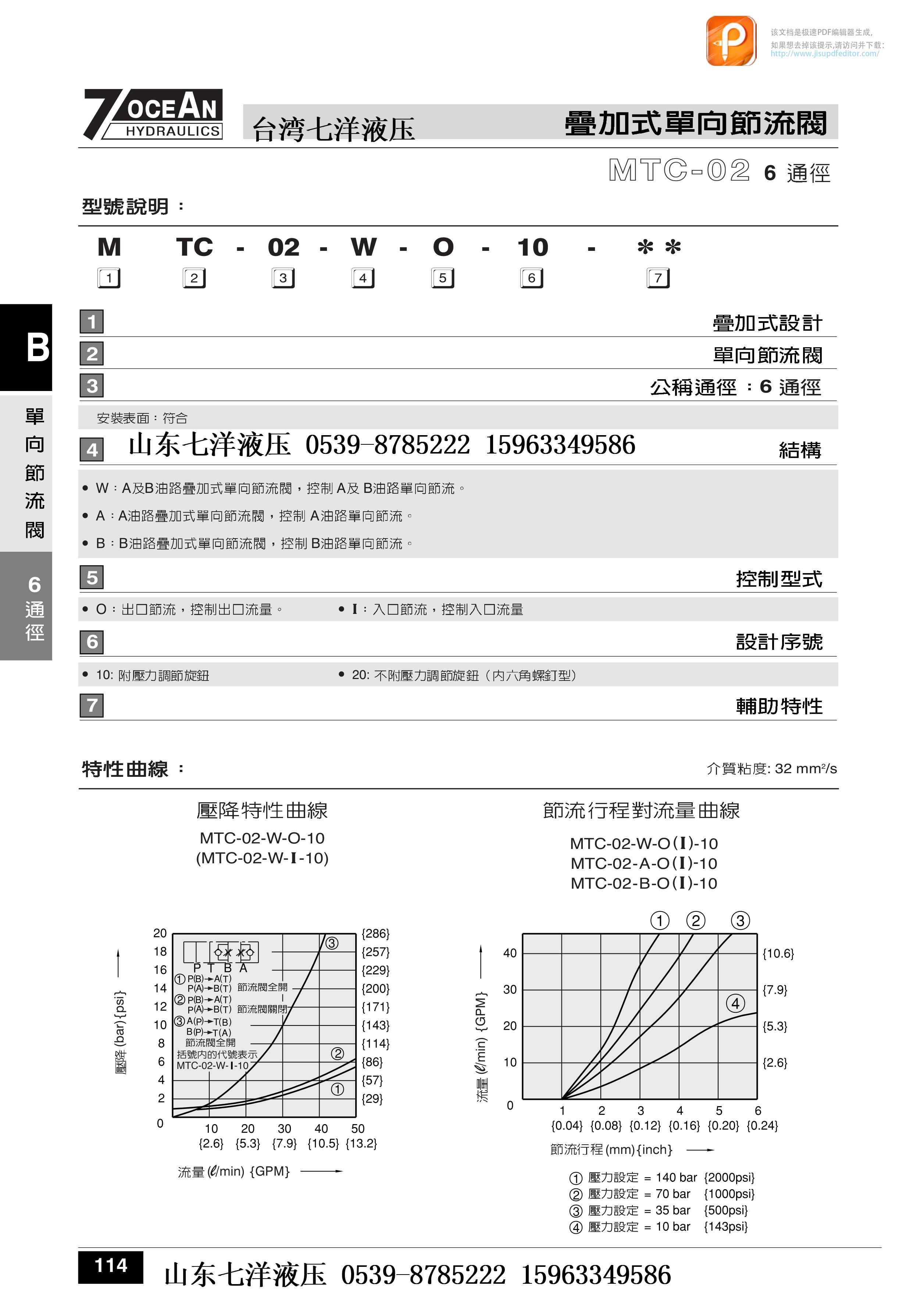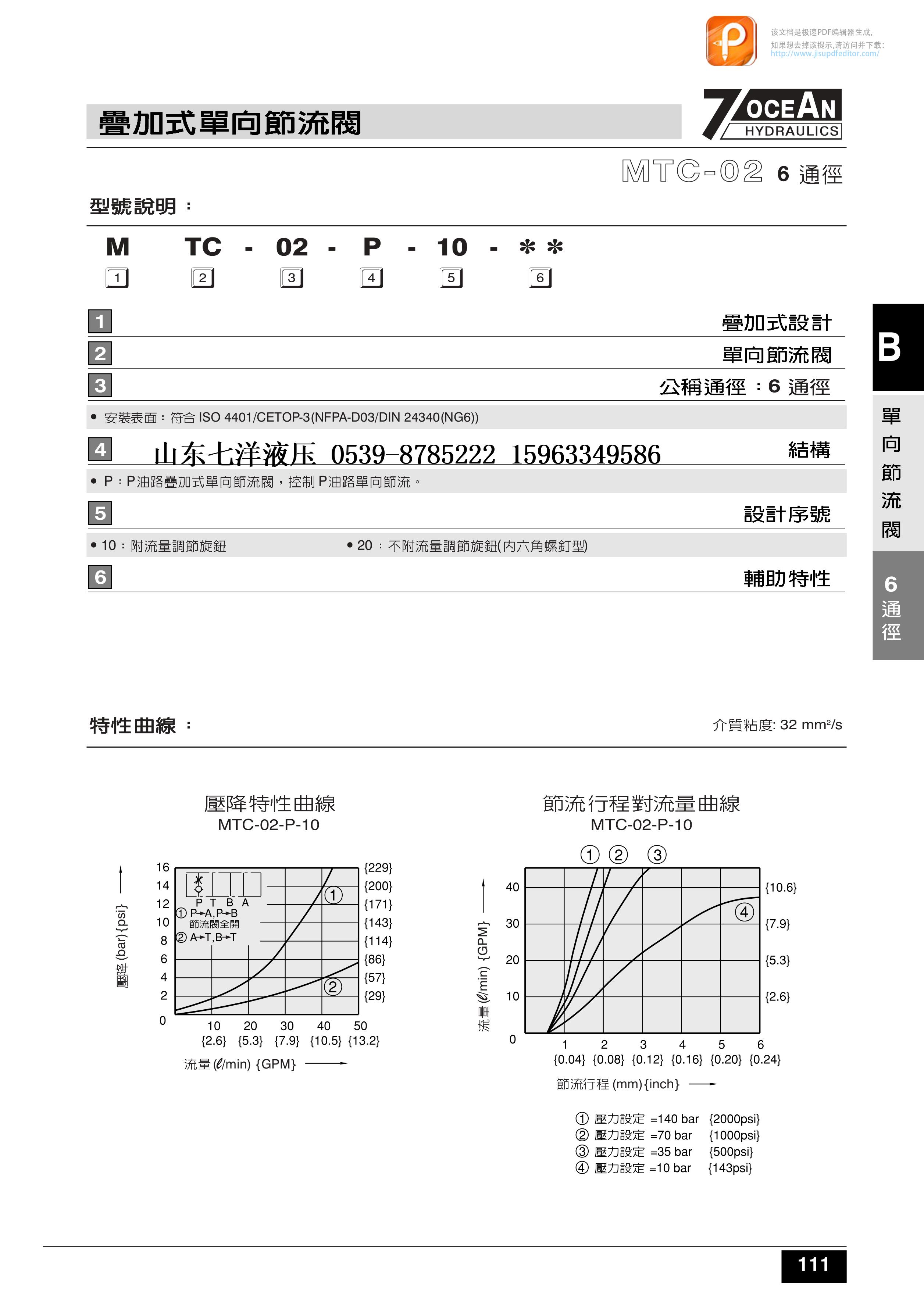 產(chǎn)品名稱:臺灣七洋6通徑疊加式單向節(jié)流閥MTC-02-W-0-10