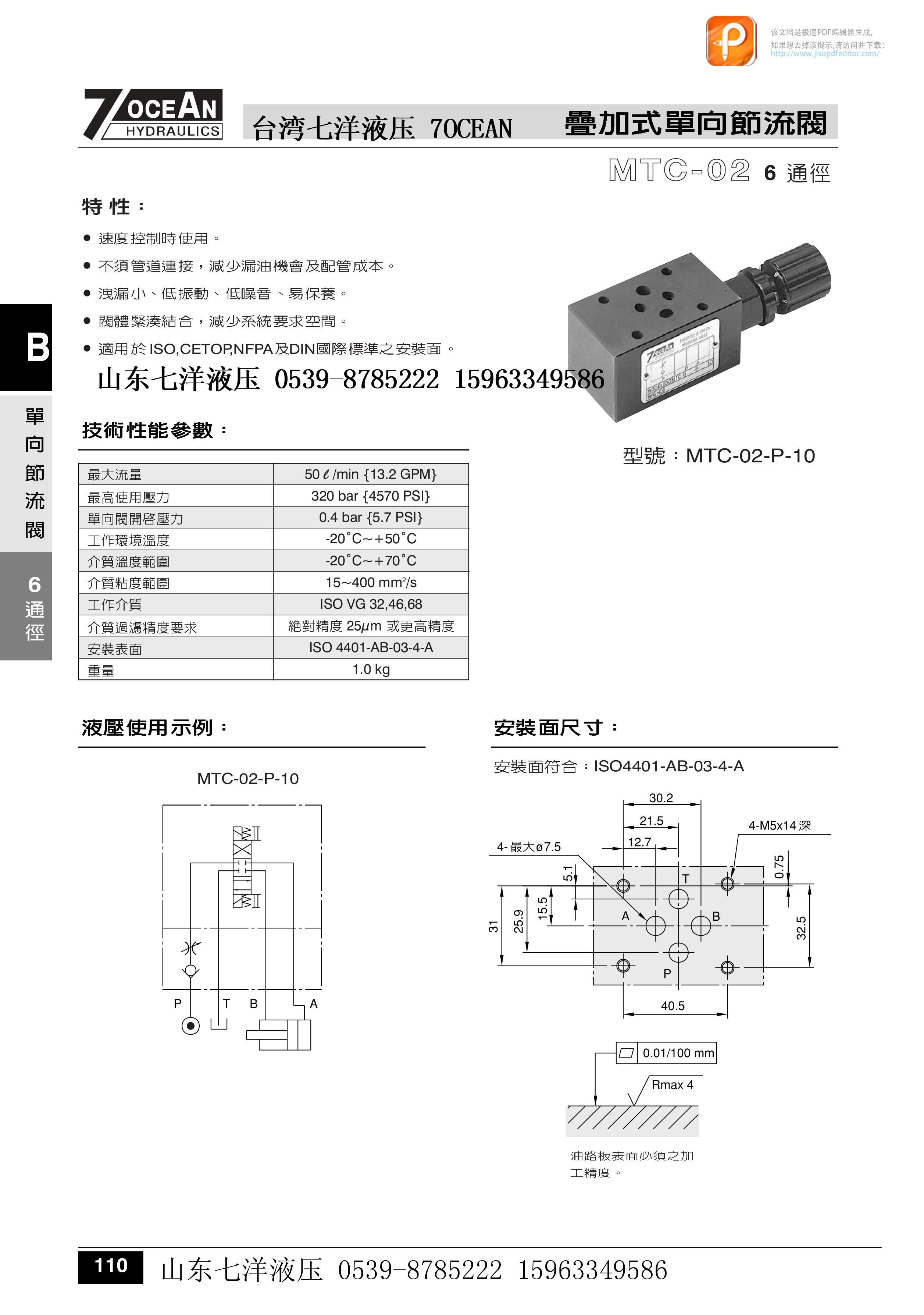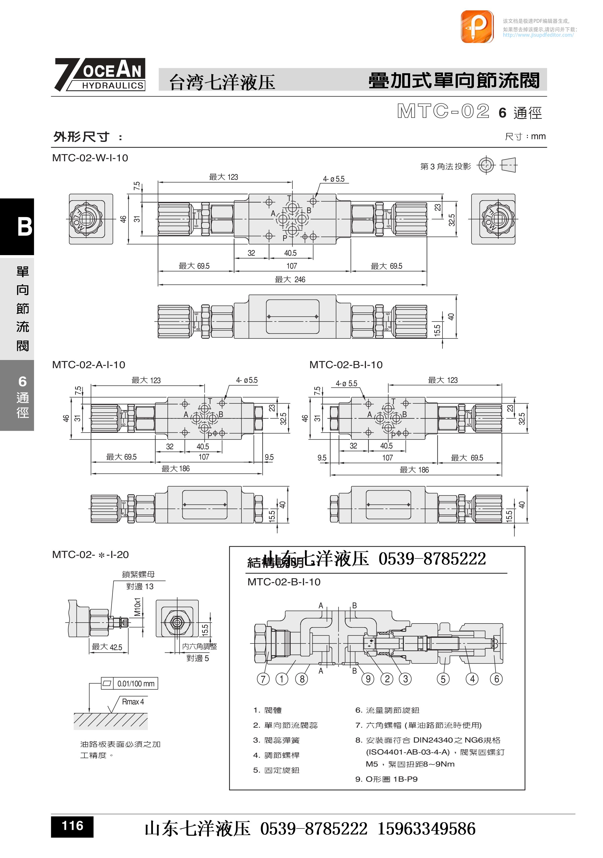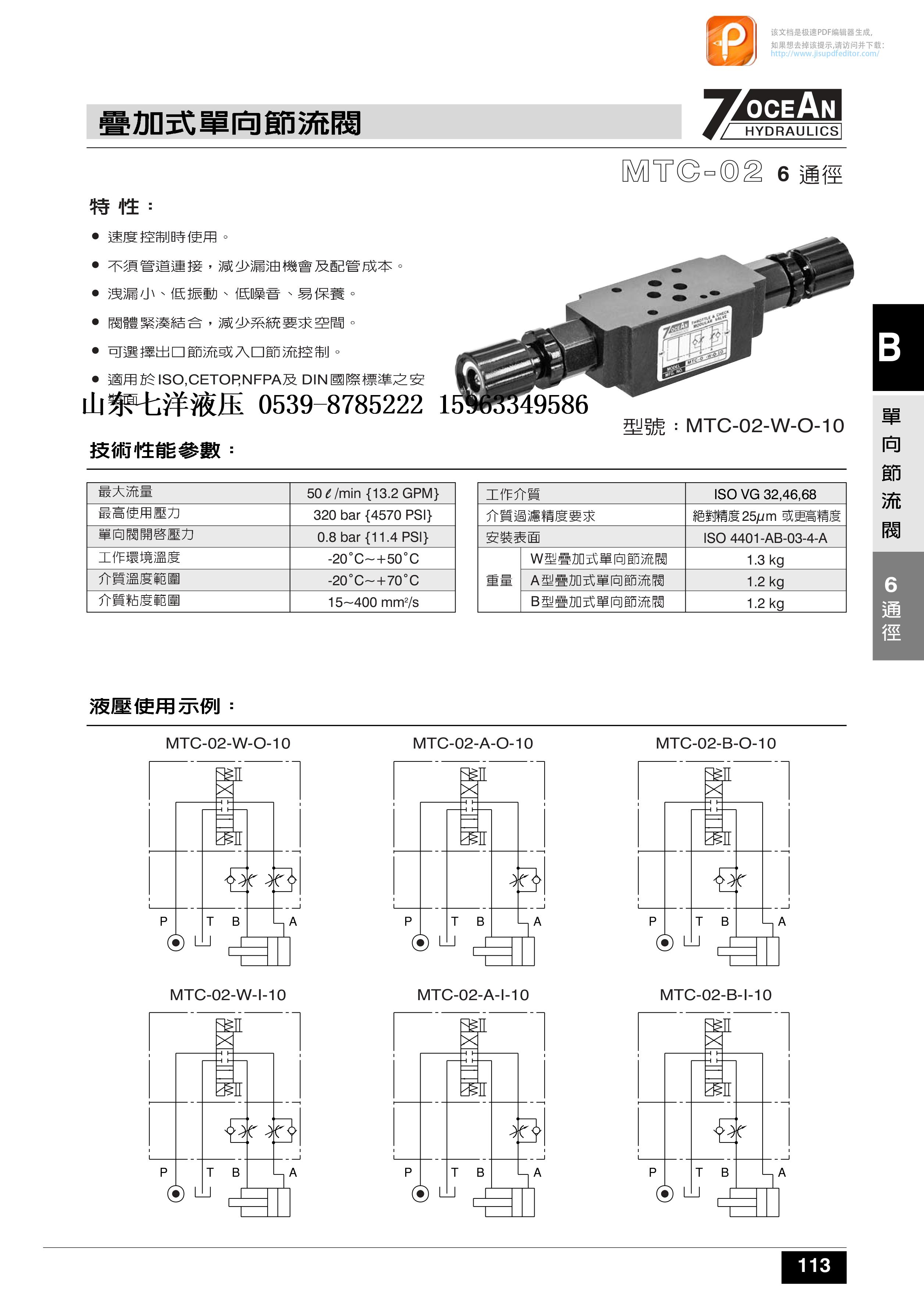 產(chǎn)品名稱:臺灣七洋6通徑疊加式單向節(jié)流閥MTC-02-W-0-10