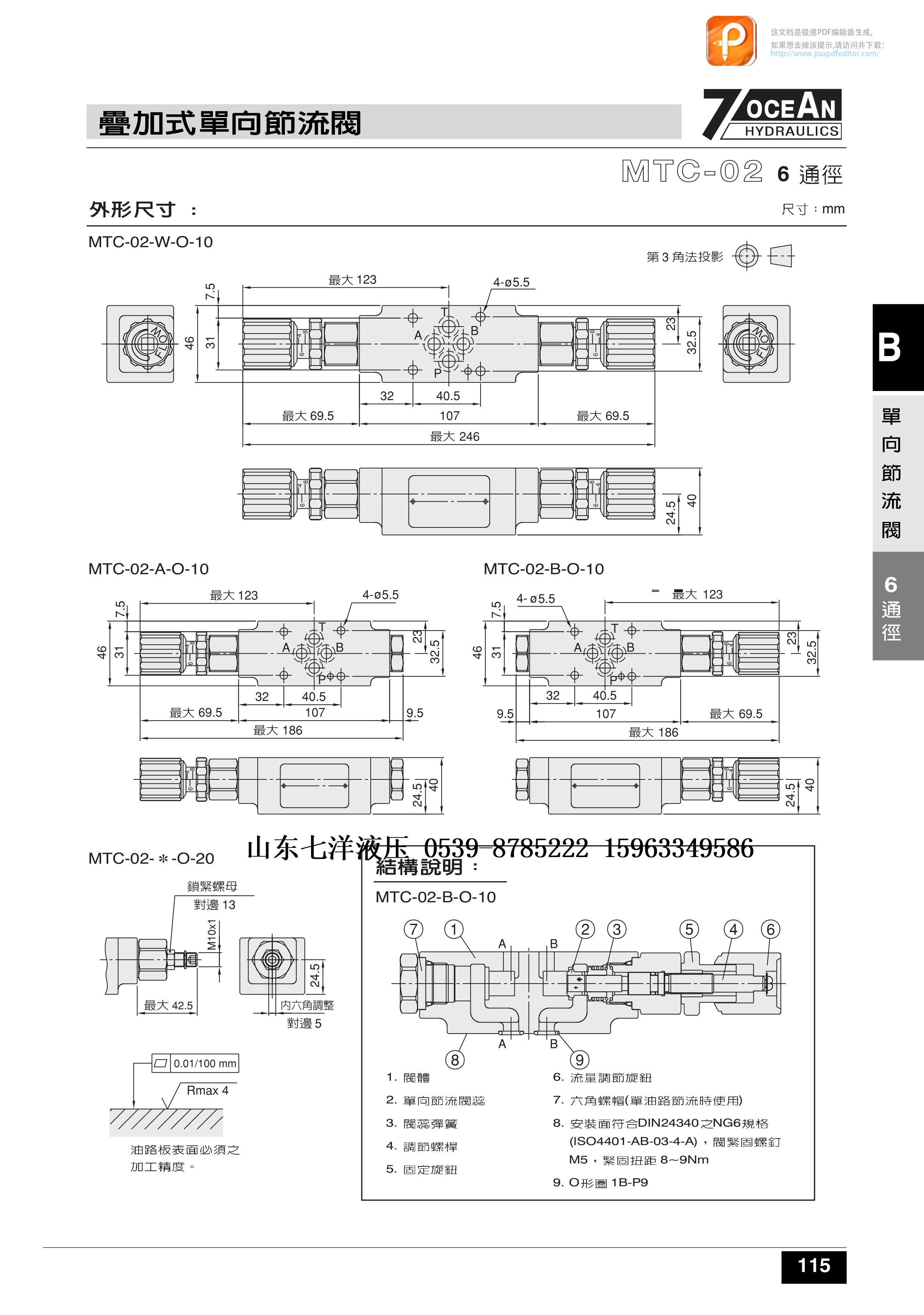 臺灣七洋6通徑疊加式單向節(jié)流閥MTC-02-W-0-10