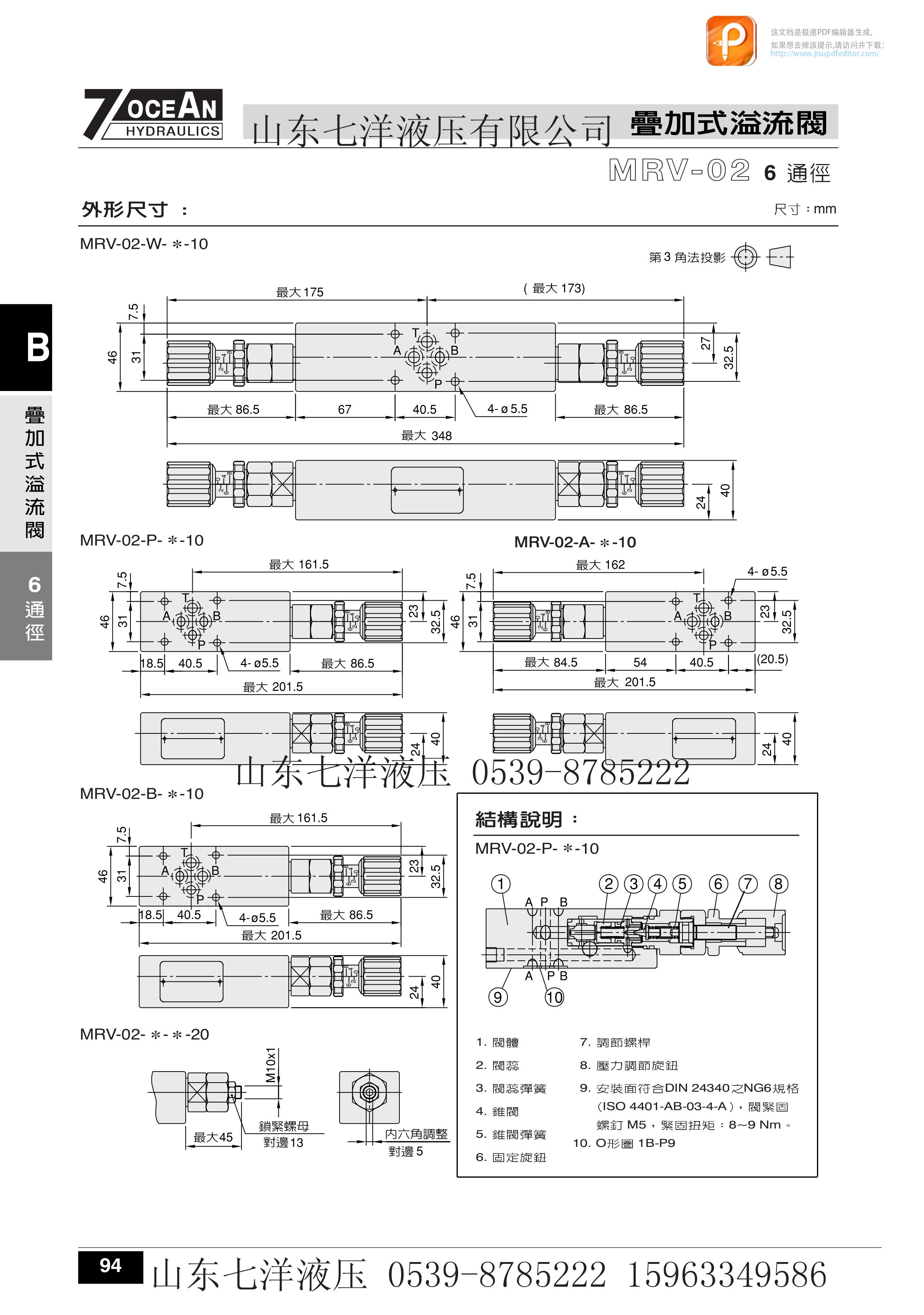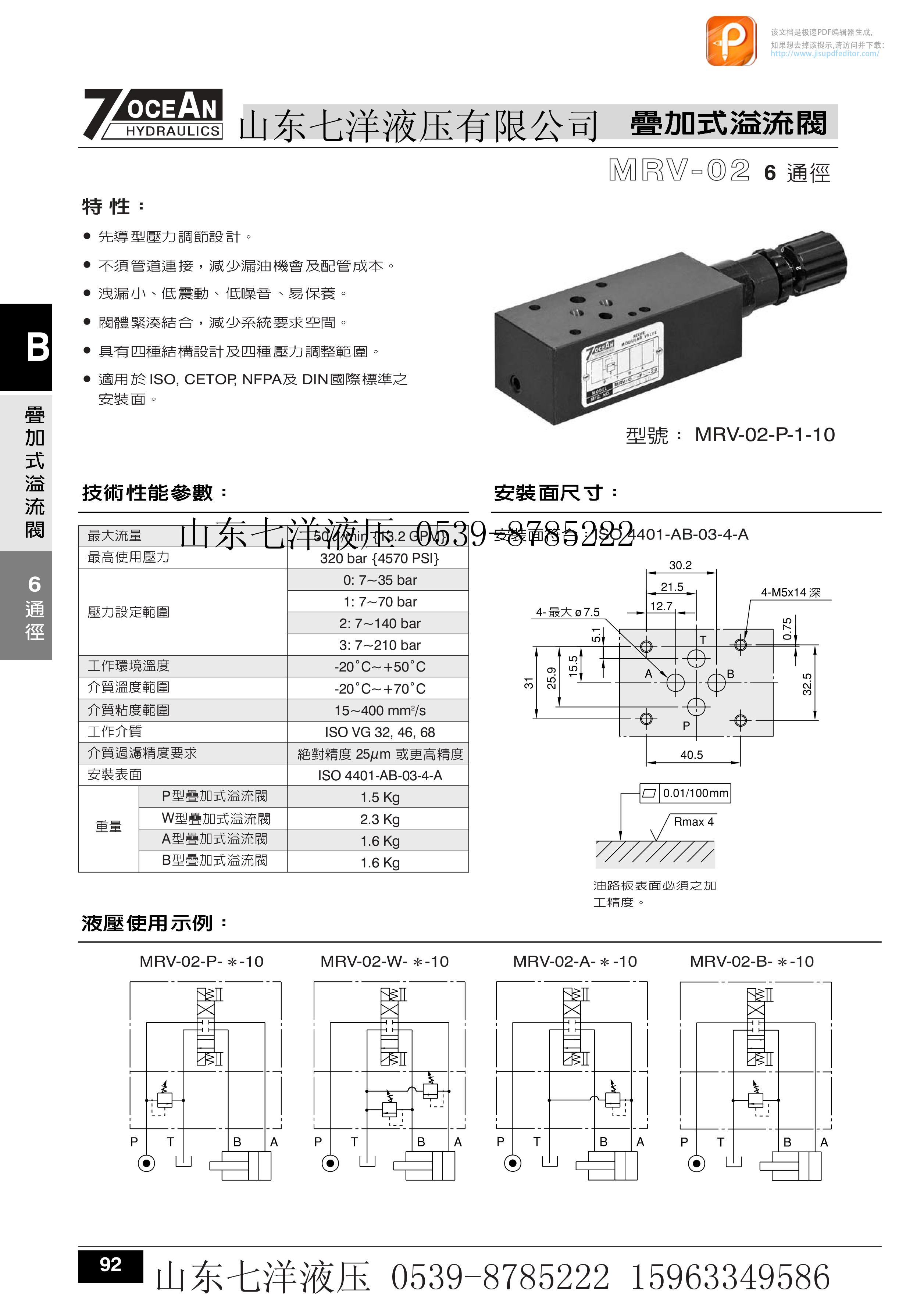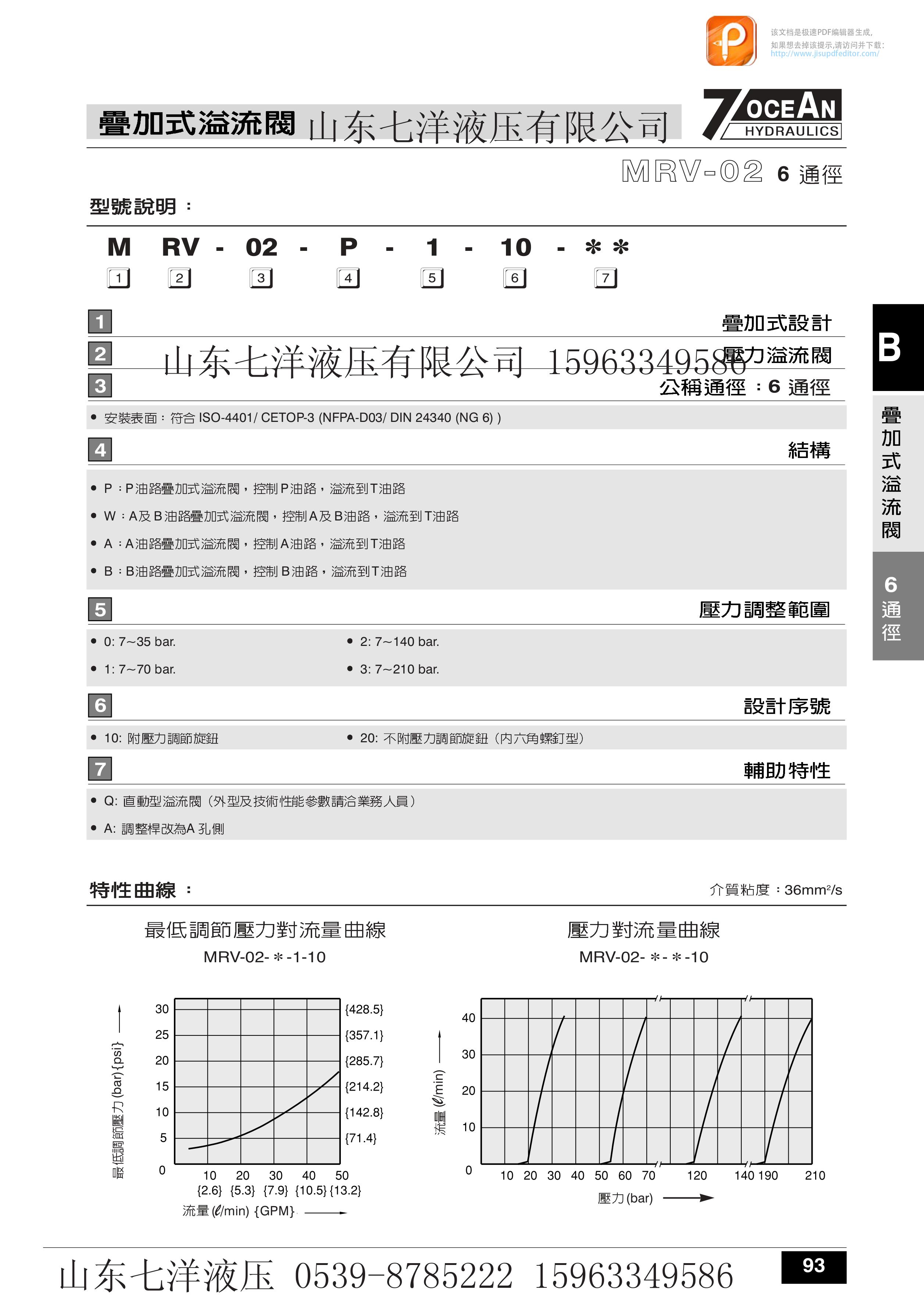 臺灣七洋液壓6通徑疊加式溢流閥MRV-02-P-1-10